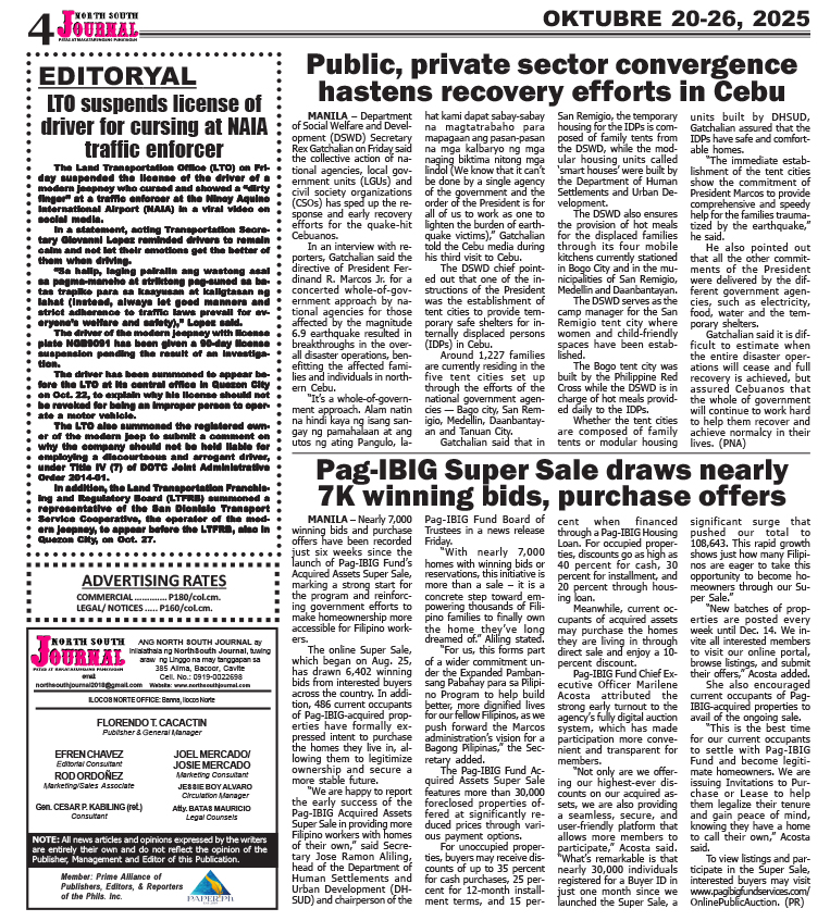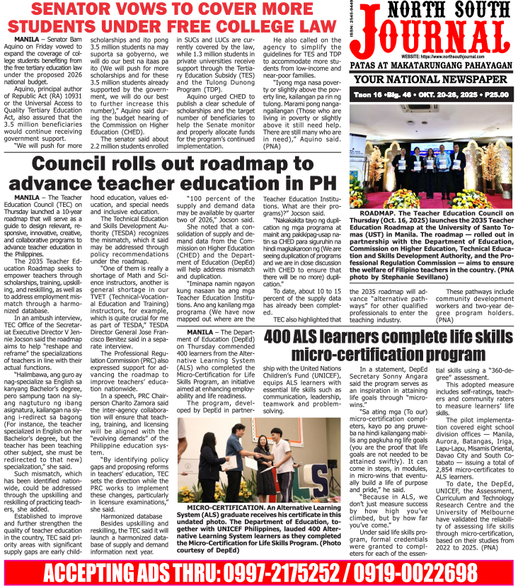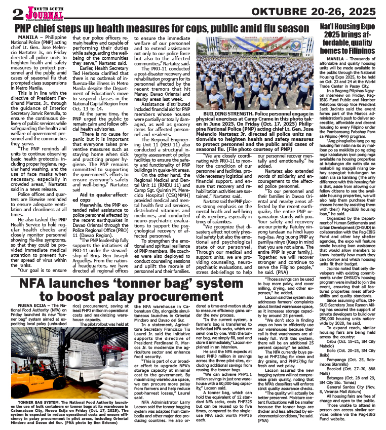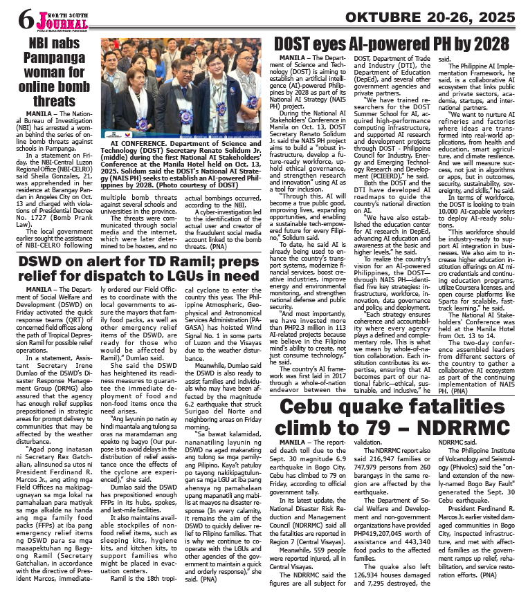 Banner news Inside Stories NSJ PRESENT FILES NSJ Oktober 20-26, 2025 North South Jorunal news team October 18, 2025 Continue Reading Previous: NSJ OCT 13-19-2025Next: NSJ OCTOBER 27- NOV. 2, 2025 Leave a Reply Cancel replyYour email address will not be published. Required fields are marked *Comment * Name * Email * Website Save my name, email, and website in this browser for the next time I comment. Related Stories NSJ OCTOBER 27- NOV. 2, 2025 Banner news Inside Stories NSJ PRESENT FILES NSJ OCTOBER 27- NOV. 2, 2025 October 25, 2025 NSJ OCT 13-19-2025 Banner news Inside Stories NSJ PRESENT FILES NSJ OCT 13-19-2025 October 13, 2025 NSJ OCTOBER 6-12, 2025 Banner news Inside Stories NSJ PRESENT FILES NSJ OCTOBER 6-12, 2025 October 5, 2025