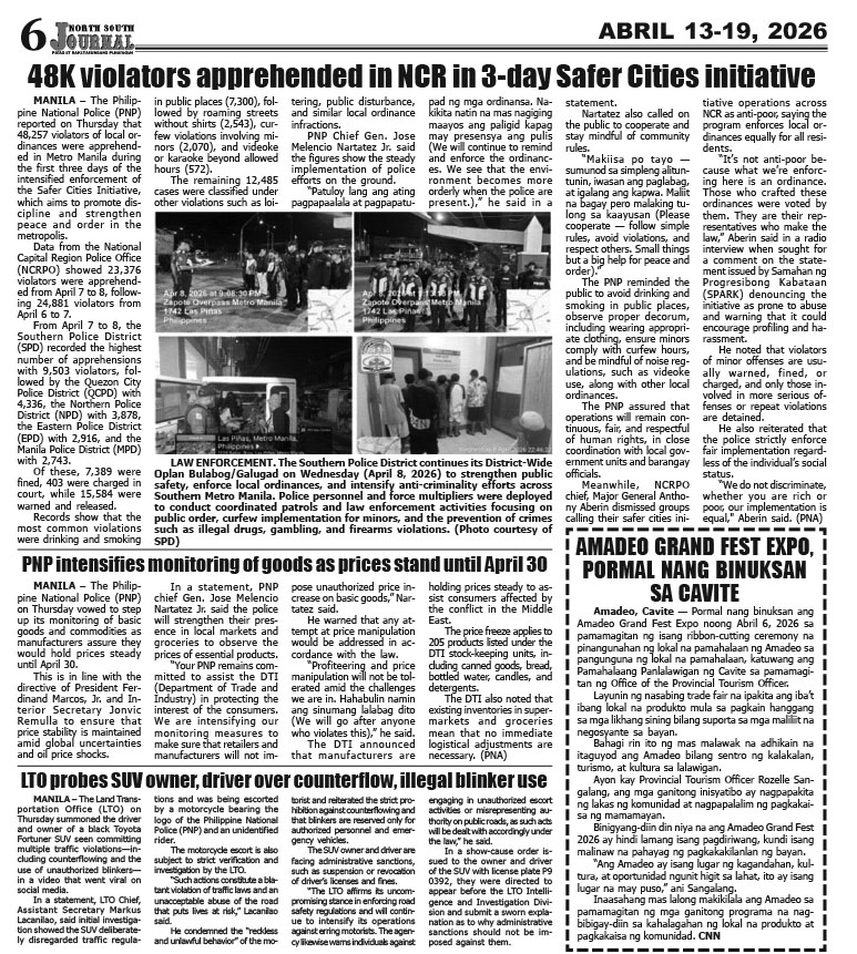 Inside Stories NSJ PRESENT FILES NSJ April 13- 19 North South Jorunal news team April 13, 2026 Continue Reading Previous: NSJ April 6-12 Issue Leave a Reply Cancel replyYour email address will not be published. Required fields are marked *Comment * Name * Email * Website Save my name, email, and website in this browser for the next time I comment. Related Stories NSJ April 6-12 Issue Inside Stories NSJ PRESENT FILES NSJ April 6-12 Issue April 6, 2026 NSJ March 30- April 5 Issue Banner news Inside Stories NSJ PRESENT FILES NSJ March 30- April 5 Issue March 30, 2026 NSJ March 23-29 Inside Stories NSJ PRESENT FILES NSJ March 23-29 March 23, 2026